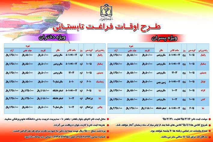 بخش ،کلاس های اوقات فراغت تابستانی جهت فرزندان ایشان در