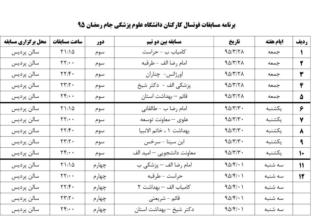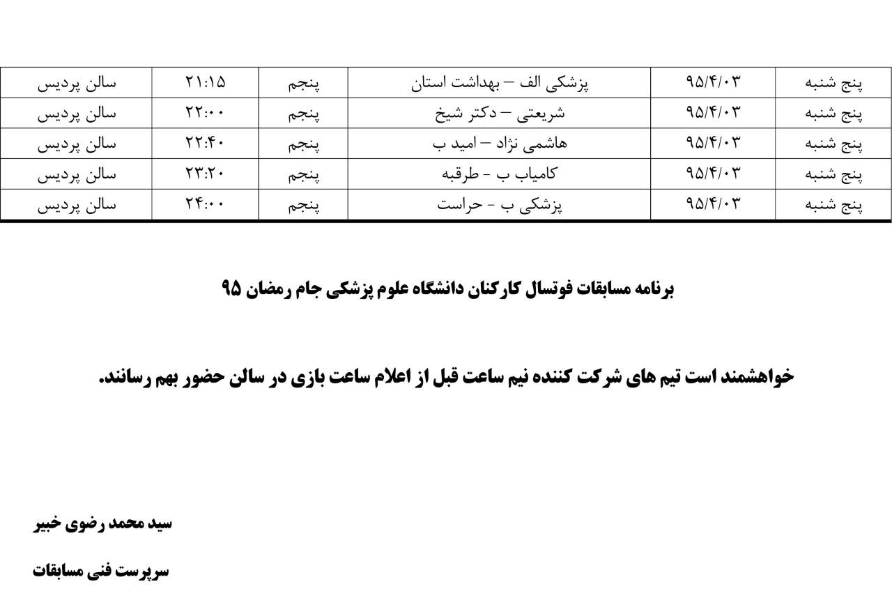 الناز زینالی اخبار مدیریت تربیت بدنی 22 خرداد 1395 22 خرداد 1395 بازدید: 579 امتیاز: ( 0 Rating ) ادامه جدول زمانبندی مسابقات فوتسال جام رمضان 95 امتیاز کاربران لطفا رای دهید رای 1 رای 2 رای 3 رای 4 رای 5 قبلی بعدی