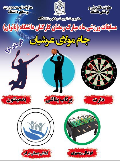احتراما بدینوسیله تاریخ ورود به سامانه تربیت بدنی جهت ثبت نام در مسابقات ماه مبارک رمضان (جام مولای عرشیان)ویژه کارکنان دانشگاه از روز دوشنبه 25/2/96 لغایت یکشنبه 31/2/96 میباشد.
