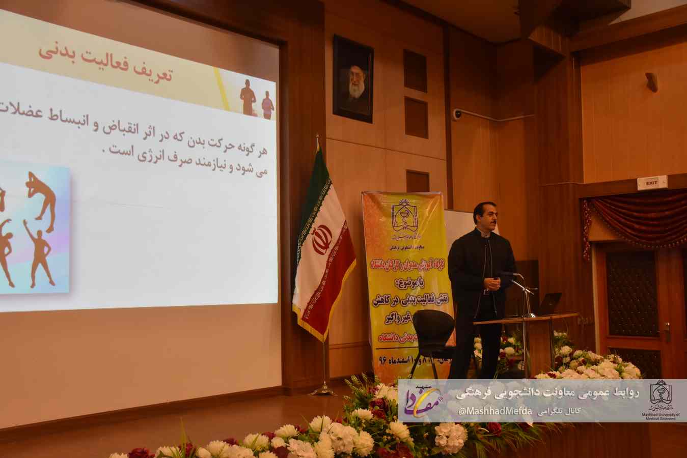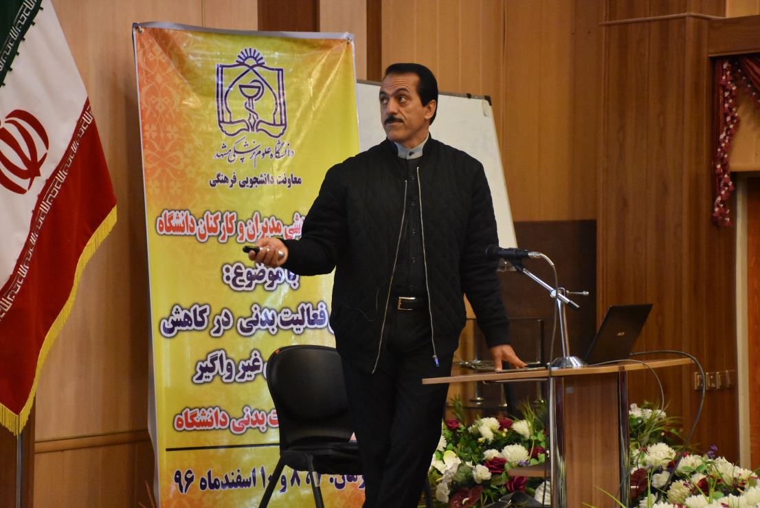 به گزارش مفدا مشهد، کارگاه آموزشی کد دار با موضوع نقش فعالیت های بدنی در کاهش بیماری های غیرواگیردار در محل تالار امام رضای دانشکده پزشکی با حضور قریب به 100 نفر از پرسنل علوم پزشکی و مسئولین برگزارگردید .