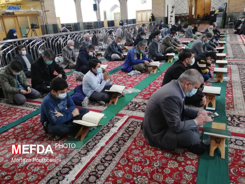 مراسم نورانی محفل اُنس با قرآن کریم، گرامیداشت شهدای مدافع سلامت امشب پس از اقامه نماز جماعت مغرب و عشاء در دارالقرآنالکریم حرم مطهر رضوی برگزار شد.