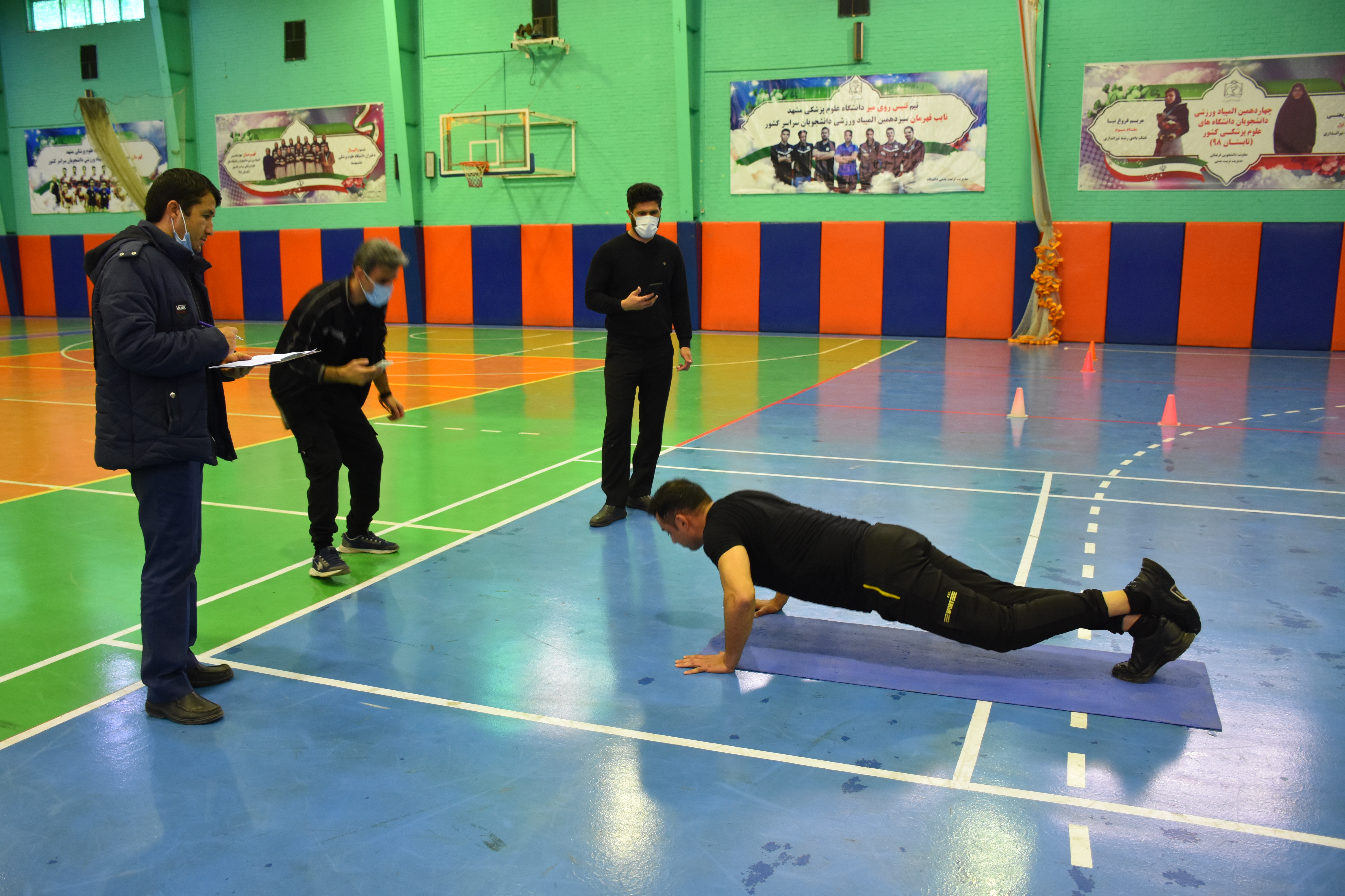 مسابقات آمادگی جسمانی نیروهای شاغل در واحد حفاظت فیزیکی دانشگاه علوم پزشکی مشهد امروز چهارشنبه ۴ اسفند در دو رده سنی ۳۵ سال و بالاتر در سالن سرپوشیده دانشگاه برگزار شد .