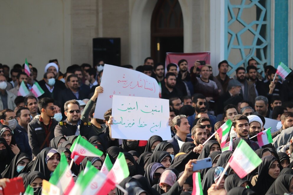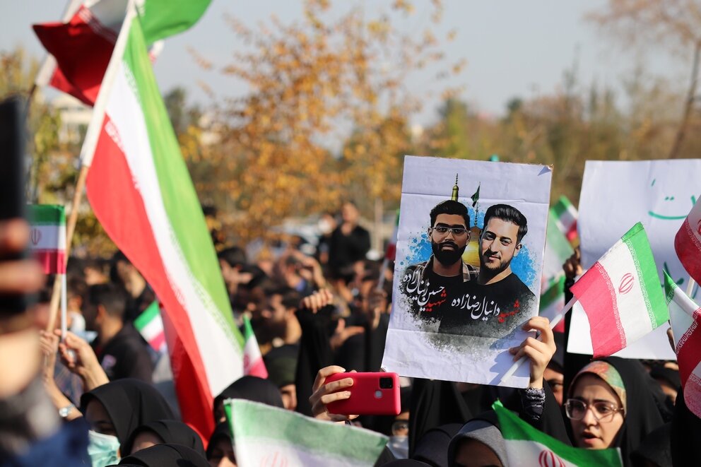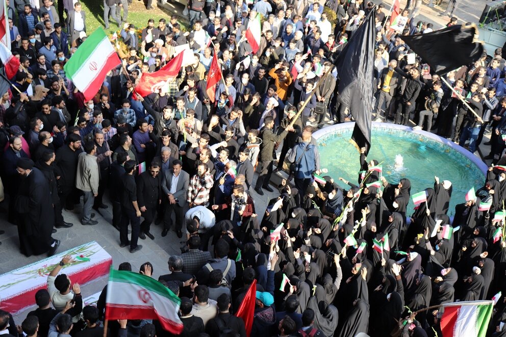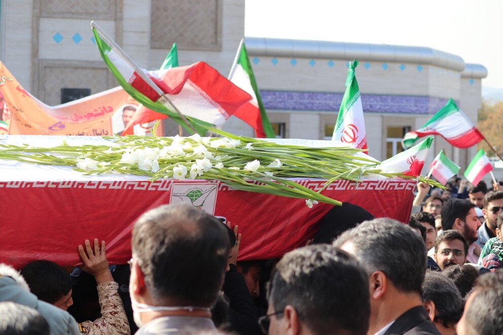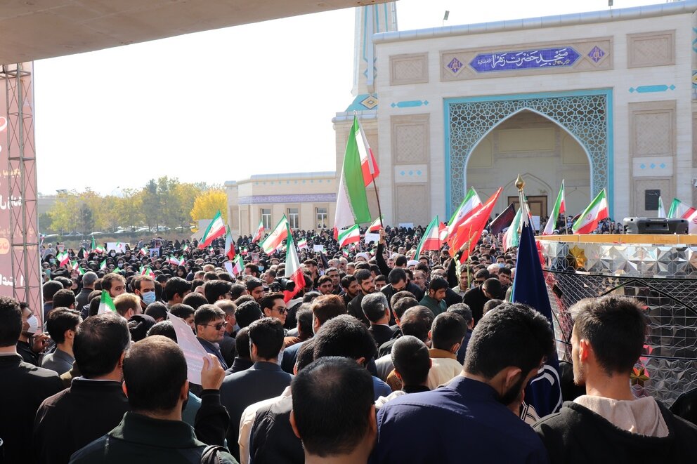 روز شنبه ۲۸ آبان ۱۴۰۱ با حضور با شکوه دانشگاهیان سراسر مشهد در پردیس دانشگاه فردوسی و علوم پزشکی مشهد پیکر مطهر دو دانشجوی شهید دفاع از امنیت شهید دانیال رضازاده و شهید حسین زینال زاده در محل مسجد حضرت زهرا (س) تشییع شد. شرکت کنندگان در این مراسم ضمن محکوم کردن این اقدام دشمنان پیکر پاک این دو شهید گرامی را تا دانشکده های دانشگاه علوم پزشکی مشهد تشییع کردند.