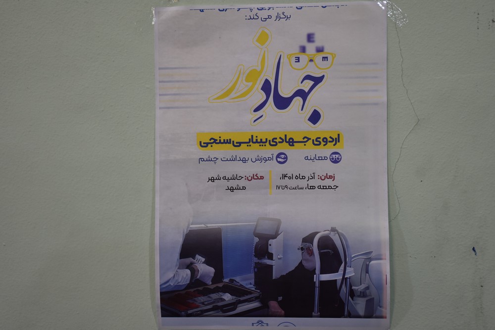 به همت جهادگران انجمن علمی اپتومتری دانشجویان دانشگاه علوم پزشکی مشهد در مورخه جمعه ۲۵ آذرماه از ساعت ۸ لغایت ۱۷ در حاشیه شهر مشهد ، بلوار حر برگزار گردید . در این اردوی جهادی حدود ۶۰ نفر از مردم منطقه ویزیت گردیدند که ازین تعداد ۳۰ نفر جهت دریافت عینک و ۱۰ نفر جهت بررسی تخصصی خدمات چشم پزشکی ارجاع داده شدند