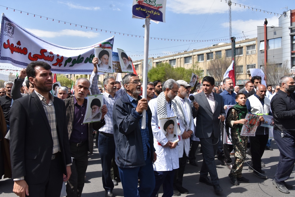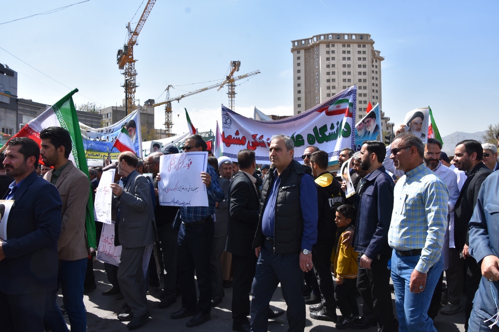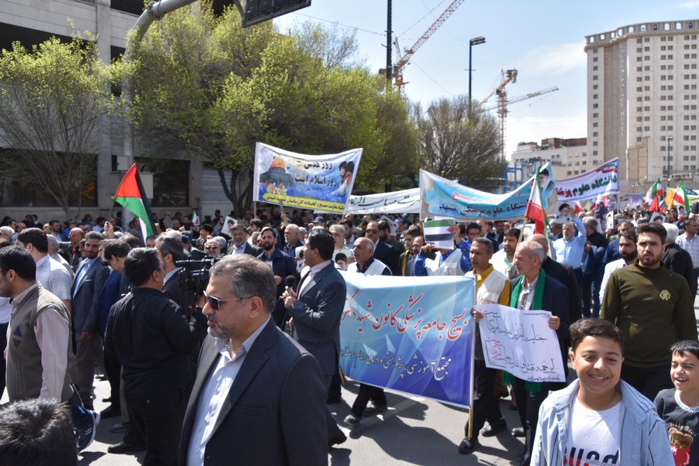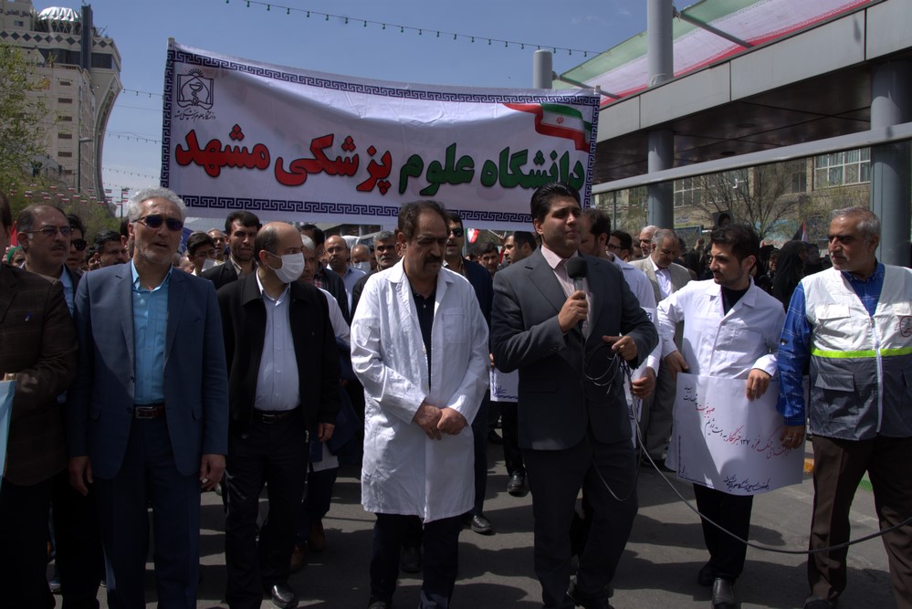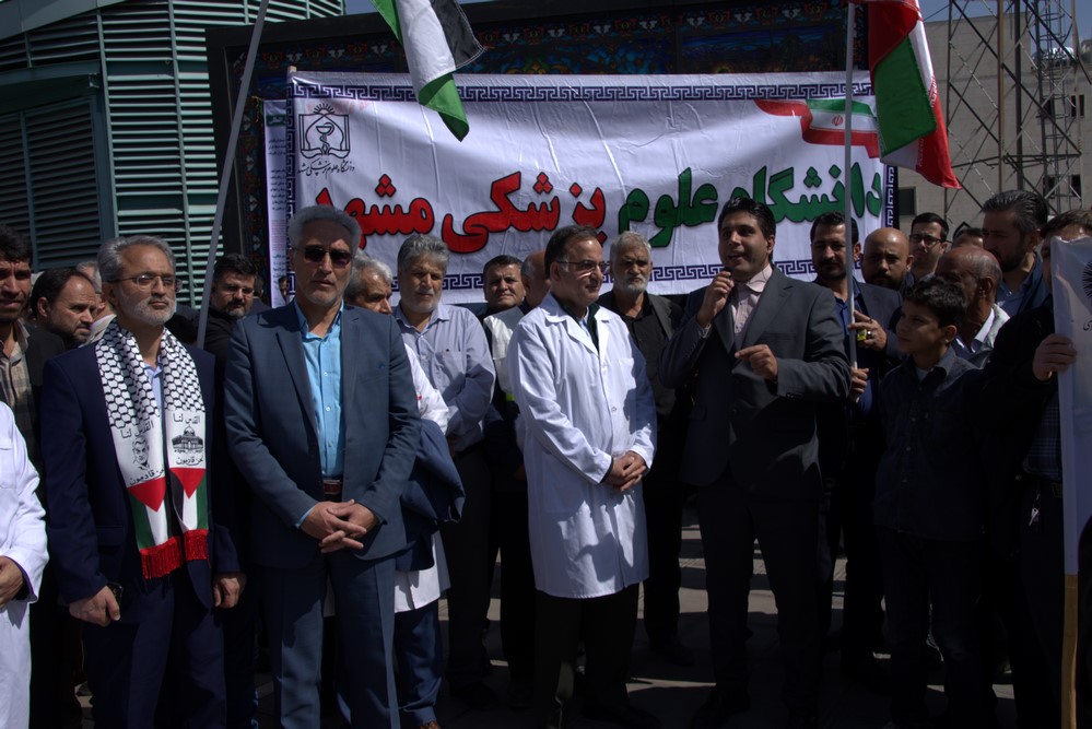 دانشگاهیان علوم پزشکی مشهد در راهپیمایی روز جهانی قدس با شعار مرگ بر اسرائیل انزجار خود را از رژیم غاصب صهیونیسم اعلام کردند.