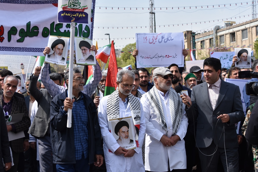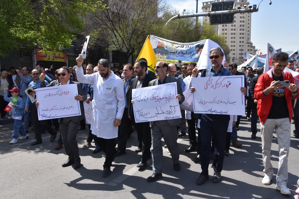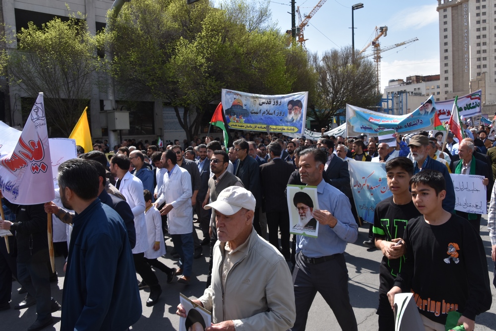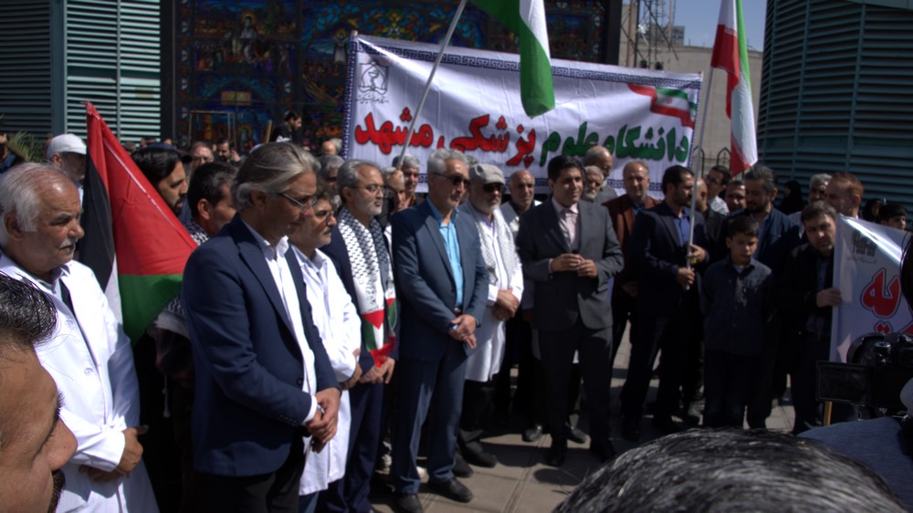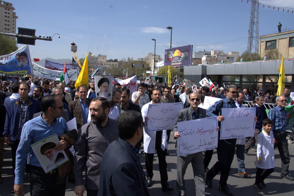 دانشگاهیان علوم پزشکی مشهد در راهپیمایی روز جهانی قدس با شعار مرگ بر اسرائیل انزجار خود را از رژیم غاصب صهیونیسم اعلام کردند.