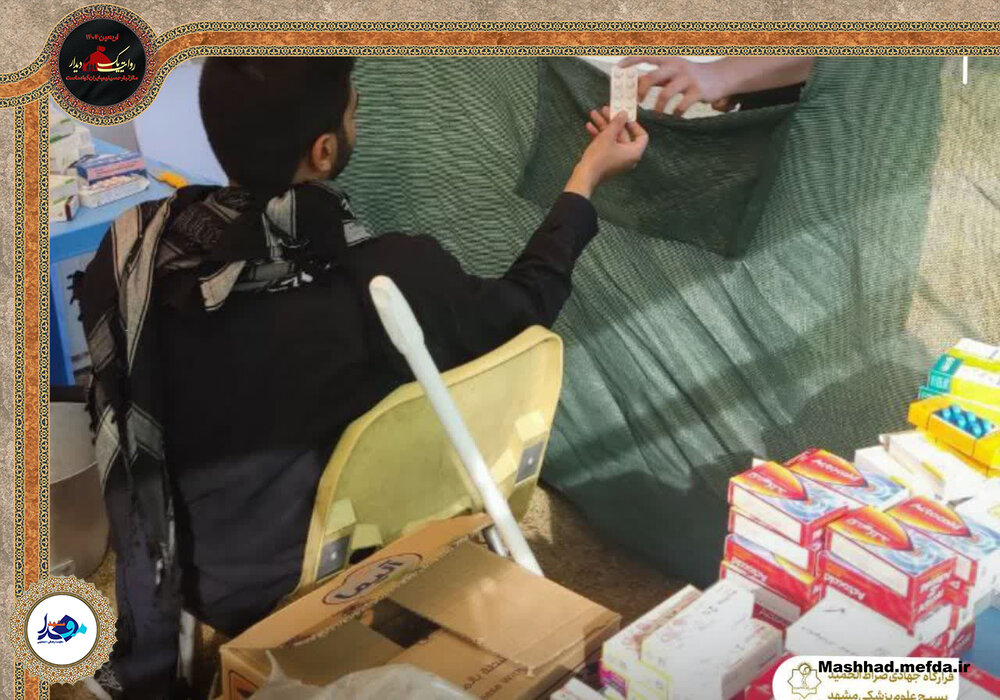 ٣۵ جهادگر بسیج دانشجویی دانشگاه علوم پزشکی مشهد در موکب ماهدالشفاء در قالب خدمات پزشکی، پرستاری، توان بخشی و دارویی در عمود ١٣٧٨ در حال خدمت رسانی به زائران حضرت سیدالشهدا(ع) هستند.