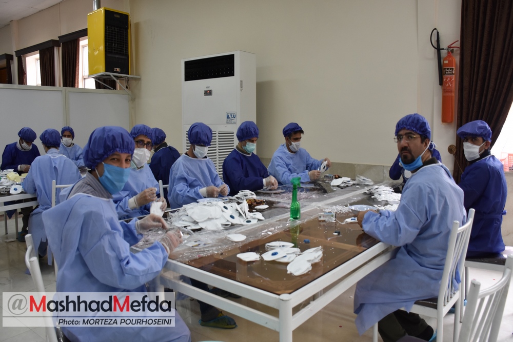 کارکنان معاونت فرهنگی دانشجویی از دهه آخر اسفند زیر نظر «ستاد مقابله با کرونا» در دانشگاه علوم پزشکی مشهد به تولید ماسک N۹۵ برای کادر درمان پرداختند و این فعالیت در ایام تعطیلات عید نوروز تا کنون ادامه دارد.