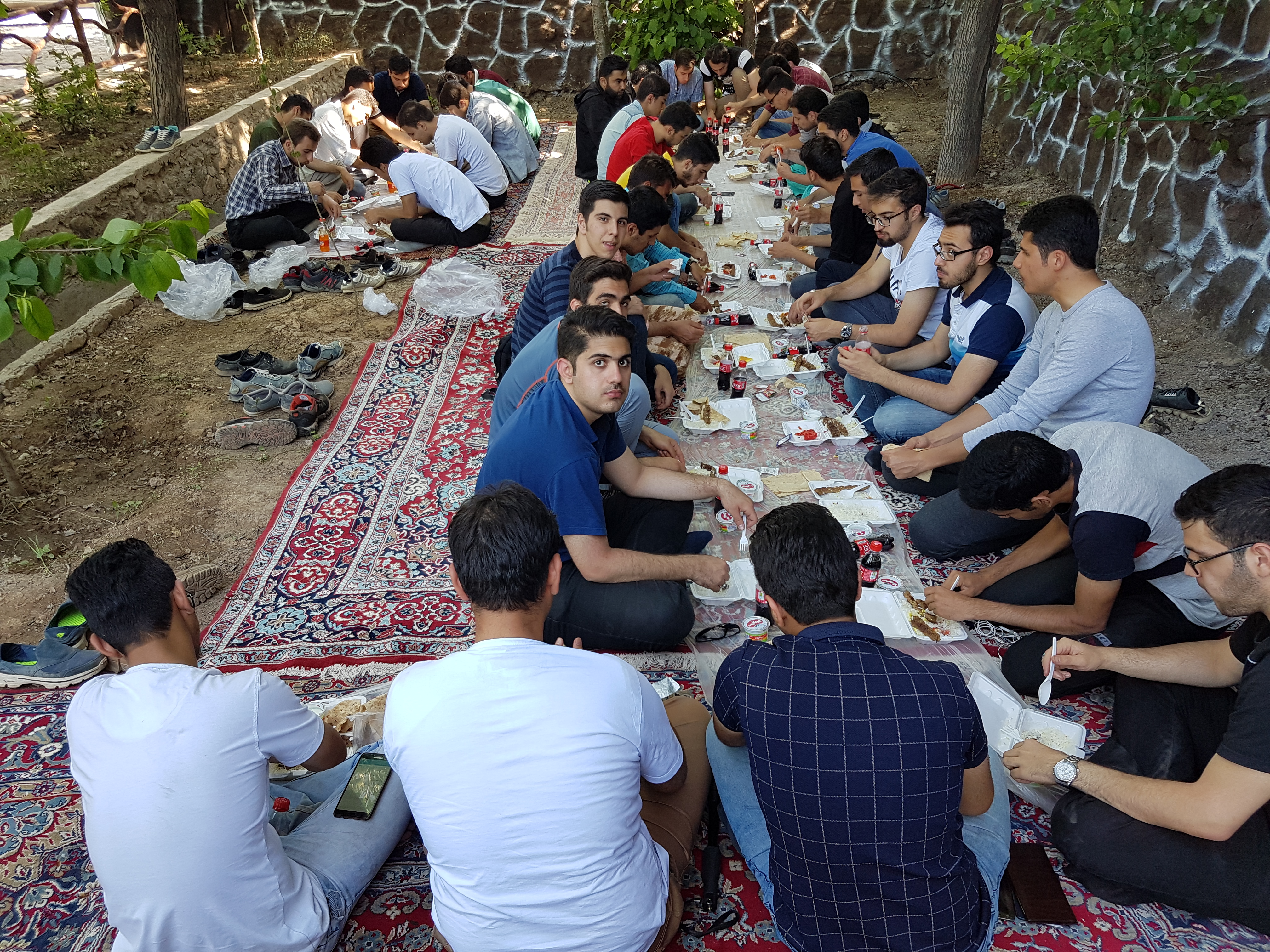 در هنگام اذان دانشجویان در تکیه بین راهی به اقامه نماز ایستاده و پس از 4 ساعت راس ساعت 14:30 توزیع نهار در استراحتگاهی زیبا آغاز گردید و پس از اندکی استراحت دانشجویان سوار بر اتوبوس, راهی مشهد شده و پس از پذیرایی با بستنی در اتوبوس, حدود ساعت 18 در کوی پردیس دانشگاه به این اردو خاتمه دادند.