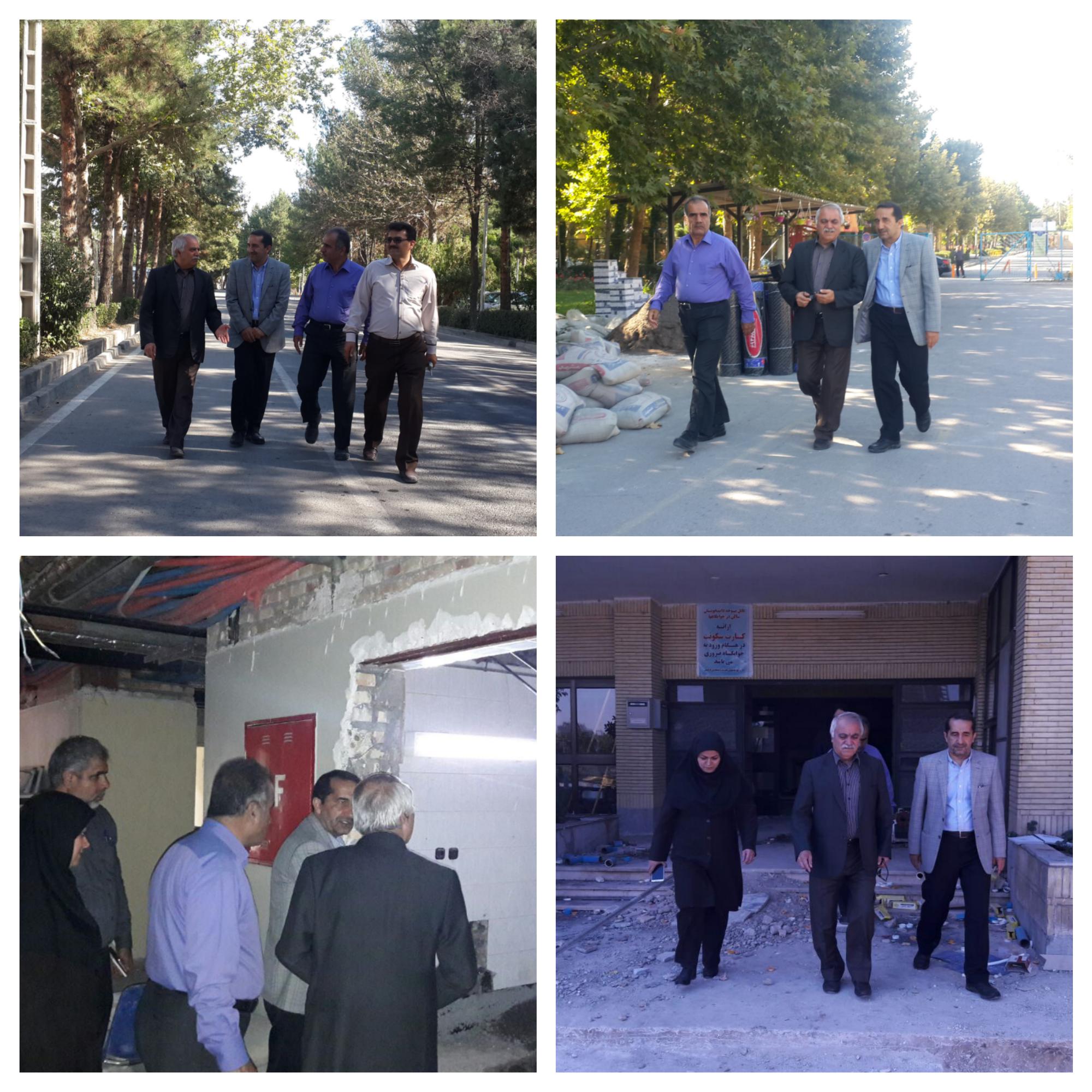 در اين بازديد، رييس دانشگاه، صالح مقدم مدير دانشجويي و دکتر شاکري مدير فرهنگي دانشگاه ، از نزديک در جريان روند کار ، مراحل پيشرفت و اقدامات انجام شده در پروژه تعميرات و بهسازي اين ابنيه قرار گرفتند.