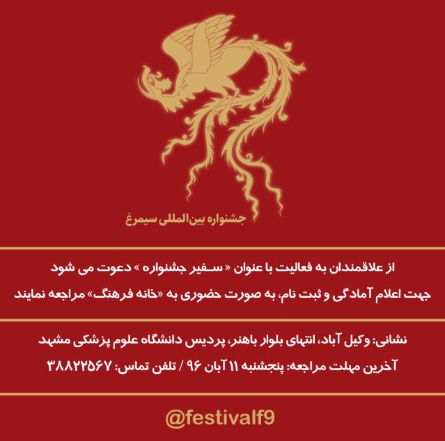 و همکاری در معرفی و اطلاعرسانی جشنواره از کلیه دانشجویان علاقمند به فعالیت تحت عنوان «سفیر جشنواره» دعوت به همکاری نموده است