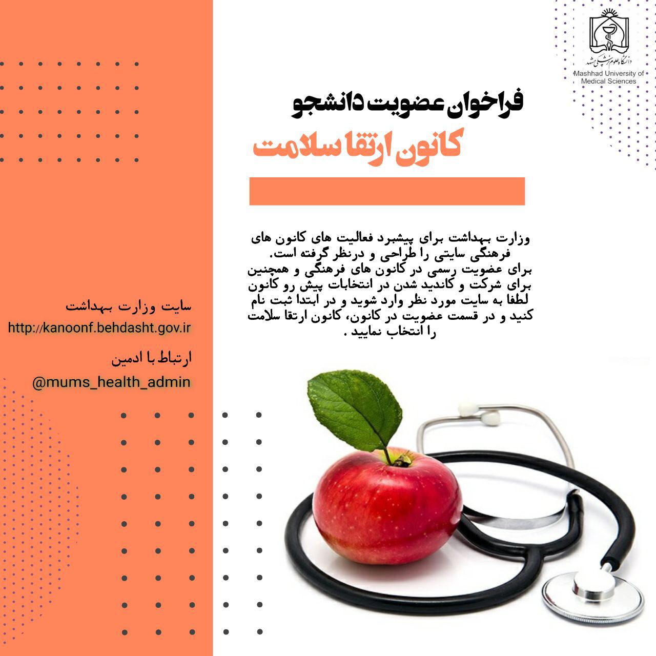 کانون ارتقا سلامت دانشگاه علوم پزشکی مشهد اعلام کرد که دانشجویان که علاقه مند به همکاری با کانون ارتقا سلامت دانشگاه هستند، میتواند وارد سامانه وزارت بهداشت شوند و ثبت نام کنند.