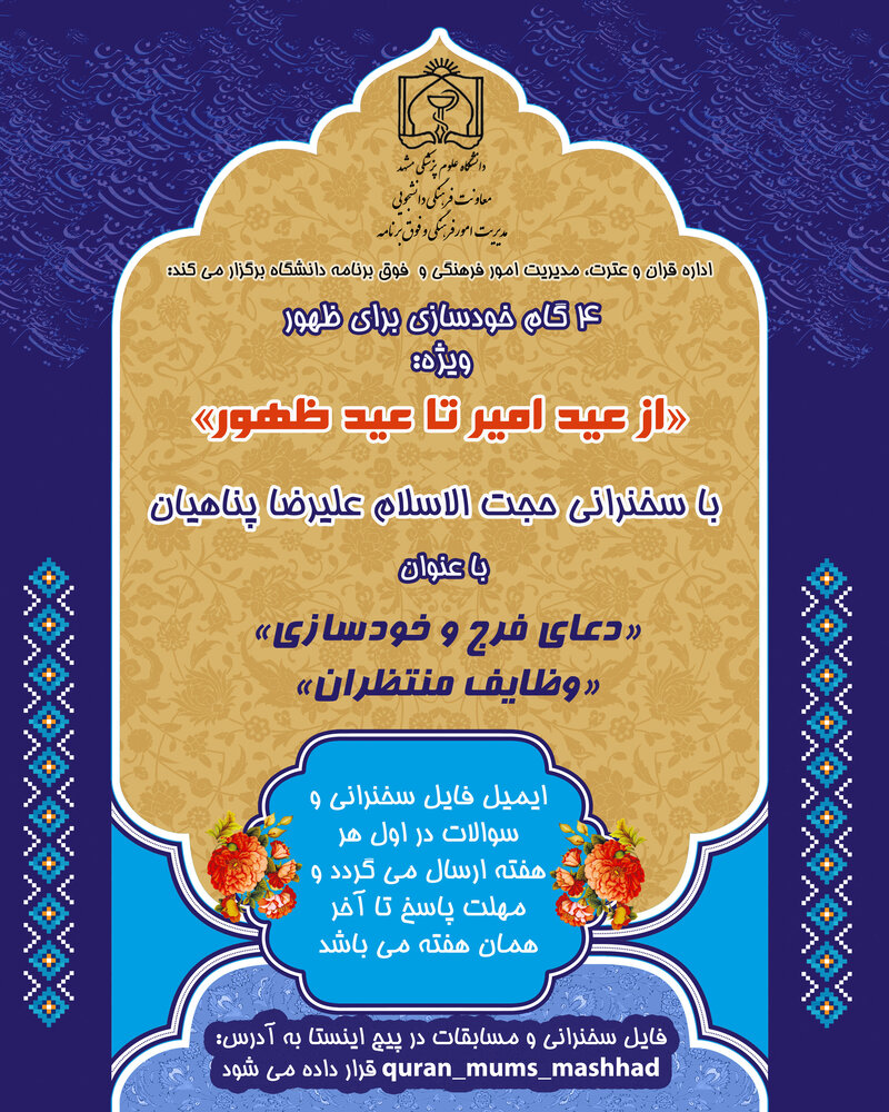 به گزارش مفدا مشهد، نتایج مسابقه گام دوم " عید امیر تا عید ظهور" با عنوان دعای فرج و خودسازی اعلام شد .