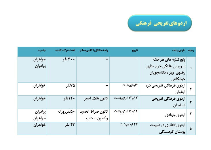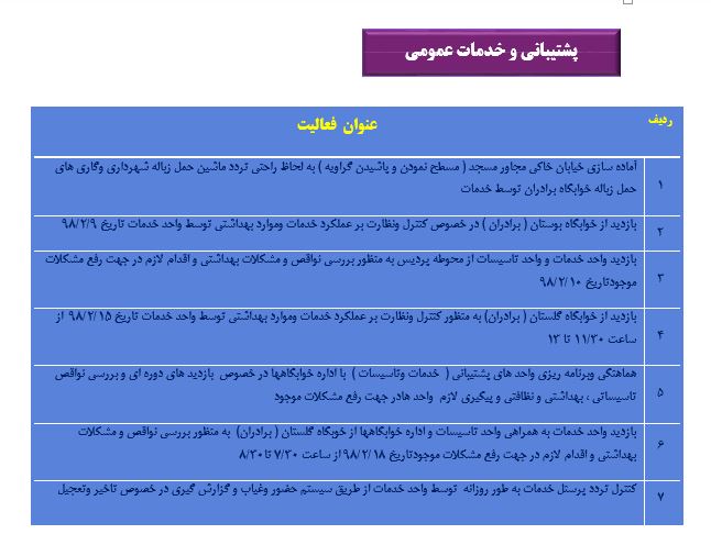 جعفریان مریم گزارش 98 31 ارديبهشت 1398 31 ارديبهشت 1398 بازدید: 569 امتیاز: ( 0 Rating ) اردیبهشت 98 امتیاز کاربران لطفا رای دهید رای 1 رای 2 رای 3 رای 4 رای 5 مدیریت دانشجویی عملکرد اداره رفــاه عملکرد اداره تغذیه اداره خوابگاه مدیریت فرهنگی اداره امور فرهنگی دانشجویان و کارکنان دبیرخانه نشریات دبیرخانه تشکل های دانشجویی دبیرخانه جشنواره فرهنگی دبیرخانه کانونهای فرهنگی دبيرخانه شوراي فرهنگی اداره فوق برنامه فعالیت هـای فـرهنگـی فعالیت های کلی مراسمات و مناسبت های ملی مذهبی فعالیت های مرتبط با خوابگاه اردوهای فرهنگی تفریحی اداره توسعه فعالیت های قرآن و عترت(ع) دانشجویان و کارکنان پژوهشــی آمـوزشــی حـوزه مناسبت هــا کانون قرآن و عتـرت بیست و چهارمین جشنواره قرآن و عترت دانشگاه های علوم پزشکی مدیریت تربیت بدنی مجموعه آبی شهید شادیفر عملکرد ورزش قهرمانی ورزش کارکنان ورزش همگانی واحد صدور کارت ورزش دانشکده ها واحد آمار و ارزشیابی واحد آموزش مشاوره و سلامت روان گزارش مشکلات دانشجویان به تشخیص روانشناسان اداره مشاوره فعالیتهای قابل ذکر همکاران کارگاهها ونشست های آموزشی همکاران فرم خلاصه گزارش اقدامات و فعالیت های روانشناس اداره مشاوره فرم خلاصه گزارش اقدامات و فعالیت های مددکاران اداره مشاوره شورای انضباطی فعالیت های شورای انضباطی دانشجویان روابط عمومی اخبار تولیدی اخبار اقتباسی اخبار کانون ها و تشکل ها نشریات دانشجویی گفتگوهای اختصاصی فیلم و کلیپ گزارش تصویری جلسات برگزار شده بارگزاری اخبار و اطلاعات صفحات مجازی امور پشتیبانی پشتیبانیو خدمات عمومــی انبــار فضای سبــز تـاسیسات نقلیــه سایــر واحــدهـا دبیـرخانـه فناوری اطلاعات عملکرد شبکه و سخت افزار قبلی بعدی