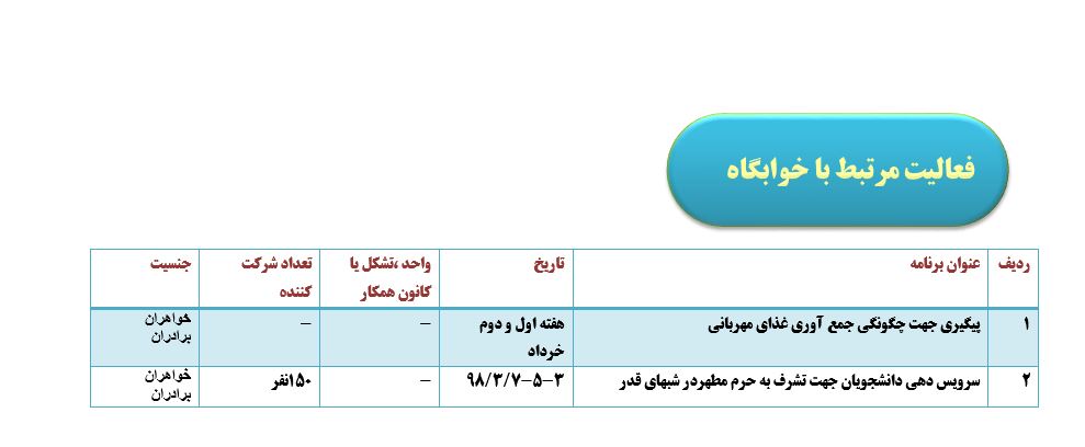 جعفریان مریم گزارش 98 30 خرداد 1398 29 خرداد 1398 بازدید: 542 امتیاز: ( 0 Rating ) خرداد 98 امتیاز کاربران لطفا رای دهید رای 1 رای 2 رای 3 رای 4 رای 5 مدیریت دانشجویی عملکرد اداره رفــاه عملکرد اداره تغذیه اداره خوابگاه مدیریت فرهنگی اداره امور فرهنگی دانشجویان و کارکنان دبیرخانه نشریات دبیرخانه تشکل های دانشجویی دبیرخانه جشنواره فرهنگی دبیرخانه کانونهای فرهنگی اداره فوق برنامه فعالیت هـای فـرهنگـی فعالیت های کلی مراسمات و مناسبت های ملی مذهبی فعالیت های مرتبط با خوابگاه اردوهای فرهنگی تفریحی اداره توسعه فعالیت های قرآن و عترت(ع) دانشجویان و کارکنان پژوهشــی آمـوزشــی حـوزه مناسبت هــا کانون قرآن و عتـرت بیست و چهارمین جشنواره قرآن و عترت دانشگاه های علوم پزشکی مدیریت تربیت بدنی مجموعه آبی شهید شادیفر عملکرد ورزش قهرمانی ورزش کارکنان و اعضاء هیئت علمی ورزش همگانی واحد آمار و ارزشیابی مشاوره و سلامت روان گزارش مشکلات دانشجویان به تشخیص روانشناسان اداره مشاوره فعالیتهای قابل ذکر همکاران کارگاهها ونشست های آموزشی همکاران فرم خلاصه گزارش اقدامات و فعالیت های روانشناس اداره مشاوره فرم خلاصه گزارش اقدامات و فعالیت های مددکاران اداره مشاوره شورای انضباطی فعالیت های شورای انضباطی دانشجویان روابط عمومی اخبار تولیدی اخبار اقتباسی اخبار کانون ها و تشکل ها نشریات دانشجویی گفتگوهای اختصاصی فیلم و کلیپ گزارش تصویری جلسات برگزار شده امور پشتیبانی پشتیبانی و خدمات عمومــی انبــار فضای سبــز تــدارکات نقلیــه سایــر واحــدهـا دبیـرخانـه فناوری اطلاعات عملکرد شبکه و سخت افزار قبلی بعدی