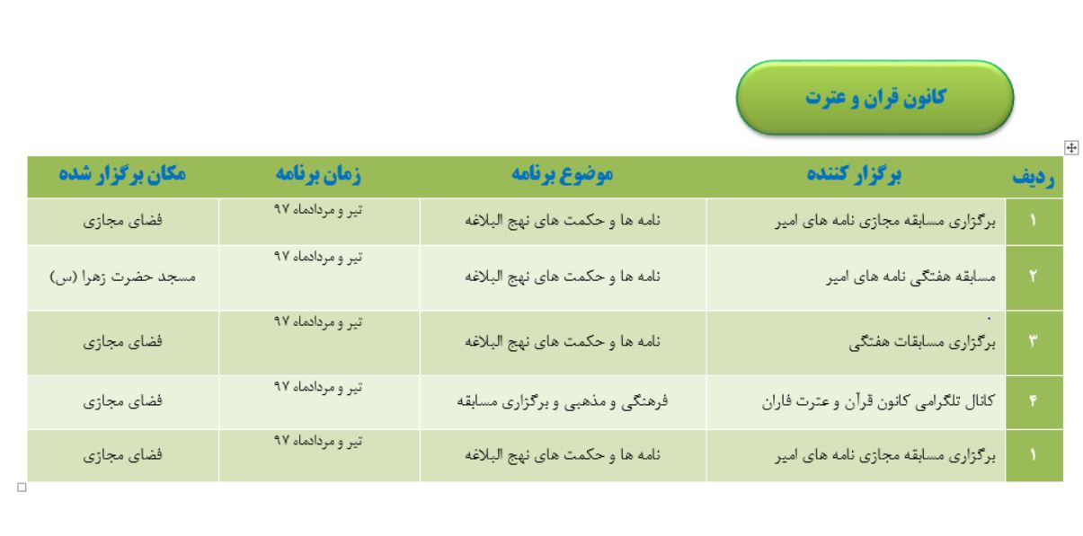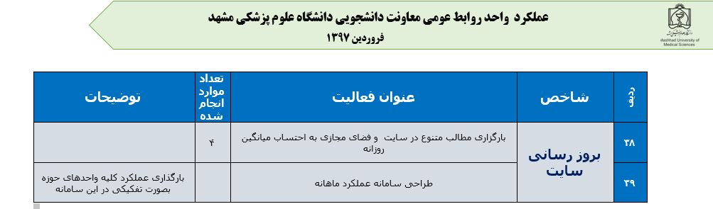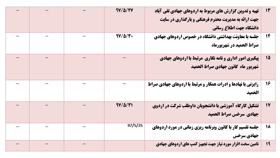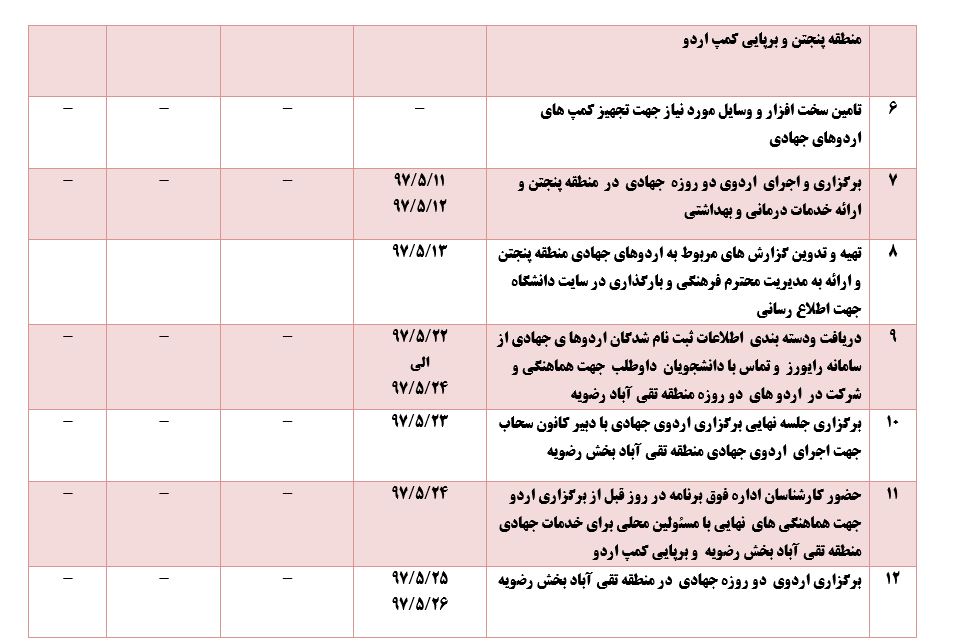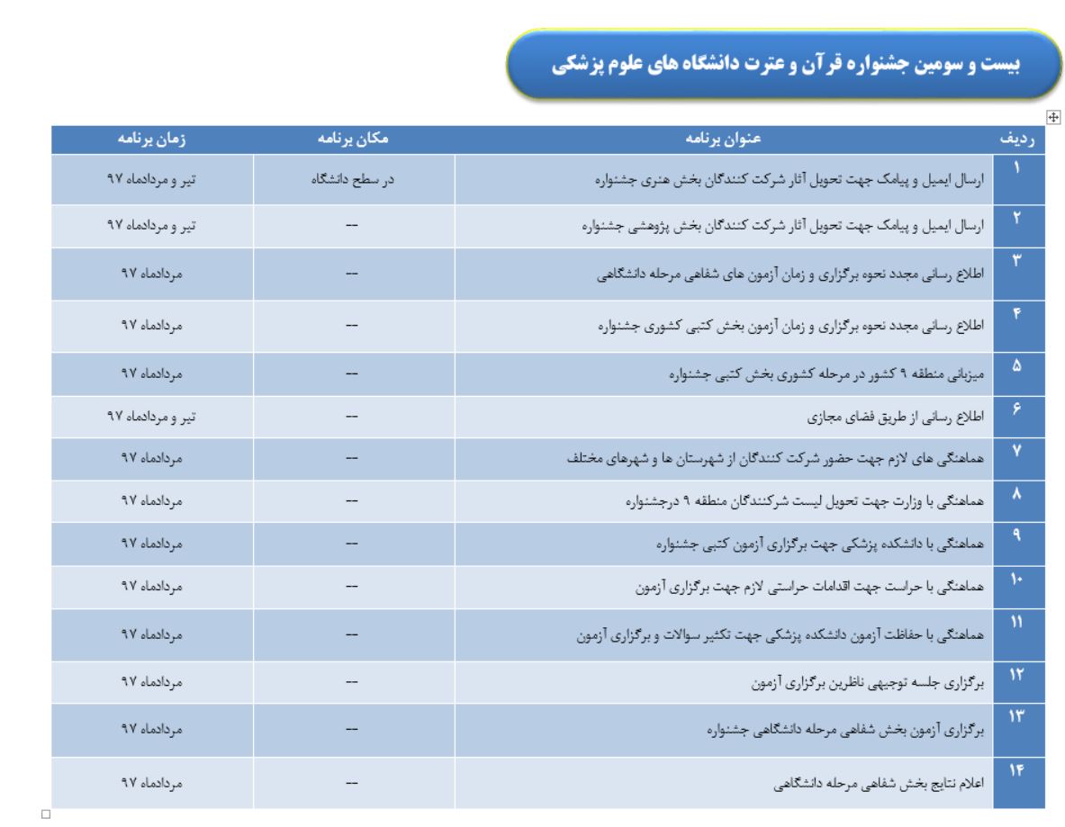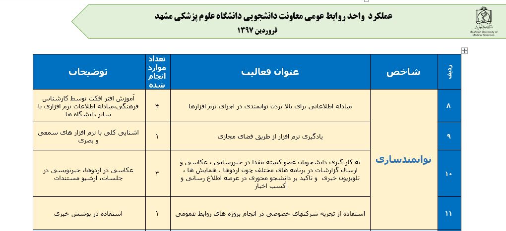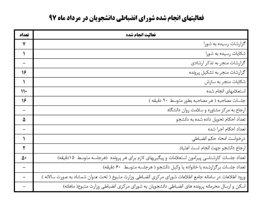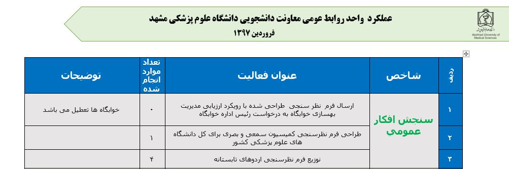جعفریان مریم گزارش 97 30 مرداد 1397 30 مرداد 1397 بازدید: 505 امتیاز: ( 0 Rating ) مرداد 97 امتیاز کاربران لطفا رای دهید رای 1 رای 2 رای 3 رای 4 رای 5 مدیریت دانشجویی عملکرد اداره رفــاه عملکرد اداره تغذیه : تعداد کل پرس غذای توزیع شده اداره خوابگاه: گزارش عملکرد مدیریت فرهنگی اداره امور فرهنگی دانشجویان و کارکنان دبیرخانه نشریات دبیرخانه شورای فرهنگی دبیرخانه جشنواره فرهنگی دبیرخانه کانون های فرهنگی دبیرخانه تشکل های دانشجویی اداره فوق برنامه اردوهــا اردوهای جهادی صفحه 1 صفحه 2 صفحه 3 فعالیت هـای فـرهنگـی مراسمات و مناسبت های ملی مذهبی فعالیت های مرتبط با خوابگاه اداره توسعه فعالیت های قرآن و عترت(ع) دانشجویان و کارکنان پژوهشــی آمـوزشــی حـوزه مناسبت هــا کانون قرآن و عتـرت بیست و سومین جشنواره قرآن و عترت دانشگاه های علوم پزشکی مدیریت تربیت بدنی تعداد استفاده کنندگان از مجموعه آبی دفتر مدیریت تربیت بدنی مجموعه آبی شهید شادیفر مجموعه آبی شهید شادیفر - شیفت بانوان صدور کارت فوق برنامه قهرمانی دانشجویان پسر ورزش کارکنان واحد آموزش ورزش همگانی ورزش دانشکده ها واحد آمار و ارزشیابی مشاوره و سلامت روان عملکرد اداره مشاوره و سلامت روان شورای انضباطی فعالیت های شورای انضباطی دانشجویان روابط عمومی تدوین اهداف اجرایی توانمندسازی مصاحبه های حضوری در طی مراسمات مختلف اطلاع رسانی تبلیغات محیطی همایش ها سمعی و بصری جلسات برگزار شده سنجش افکار عمومی بروز رسانی سایت مفدا و معاونت فرهنگی دانشجویی امور پشتیبانی پشتیبانی و خدمات عمومــی انبــار فضای سبــز تــدارکات نقلیــه سایــر واحــدهـا دبیـرخانـه فناوری اطلاعات پشتیبانی های عمـومی نرم افـزار شبکه قبلی بعدی