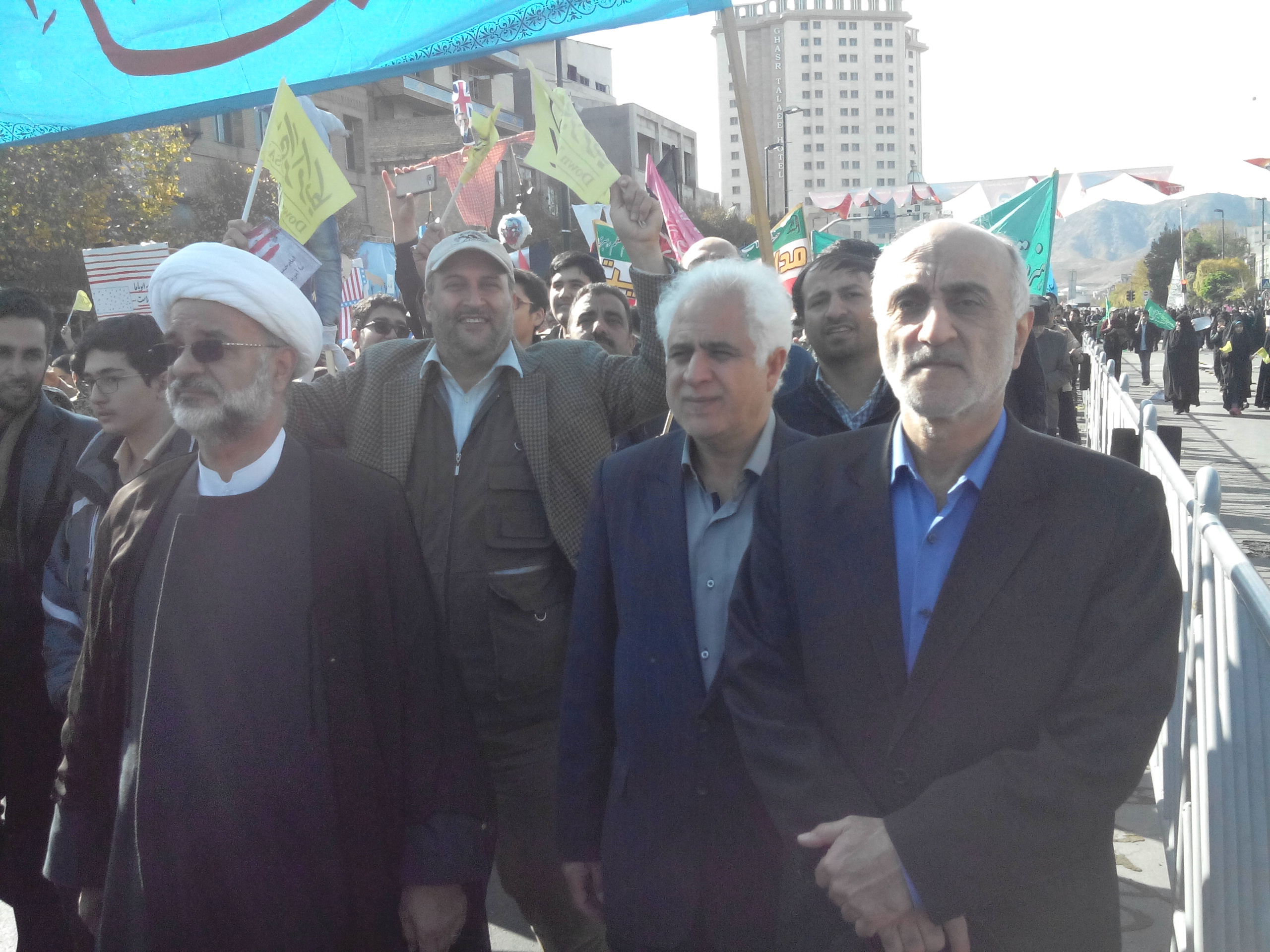 به گزارش کارشناس خبری حوزه معاونت دانشجویی فرهنگی دانشگاه علوم پزشکی مشهد، همزمان با 13 آبان ، سالروز تسخیر لانه جاسوسی و روز ملی مبارزه با استکبار جهانی ،جمعی از اساتید ، دانشجویان و کارکنان دانشگاه علوم پزشکی مشهد ، همگام با مردم شهید پرور ، در این راهپیمایی حضور یافتند .