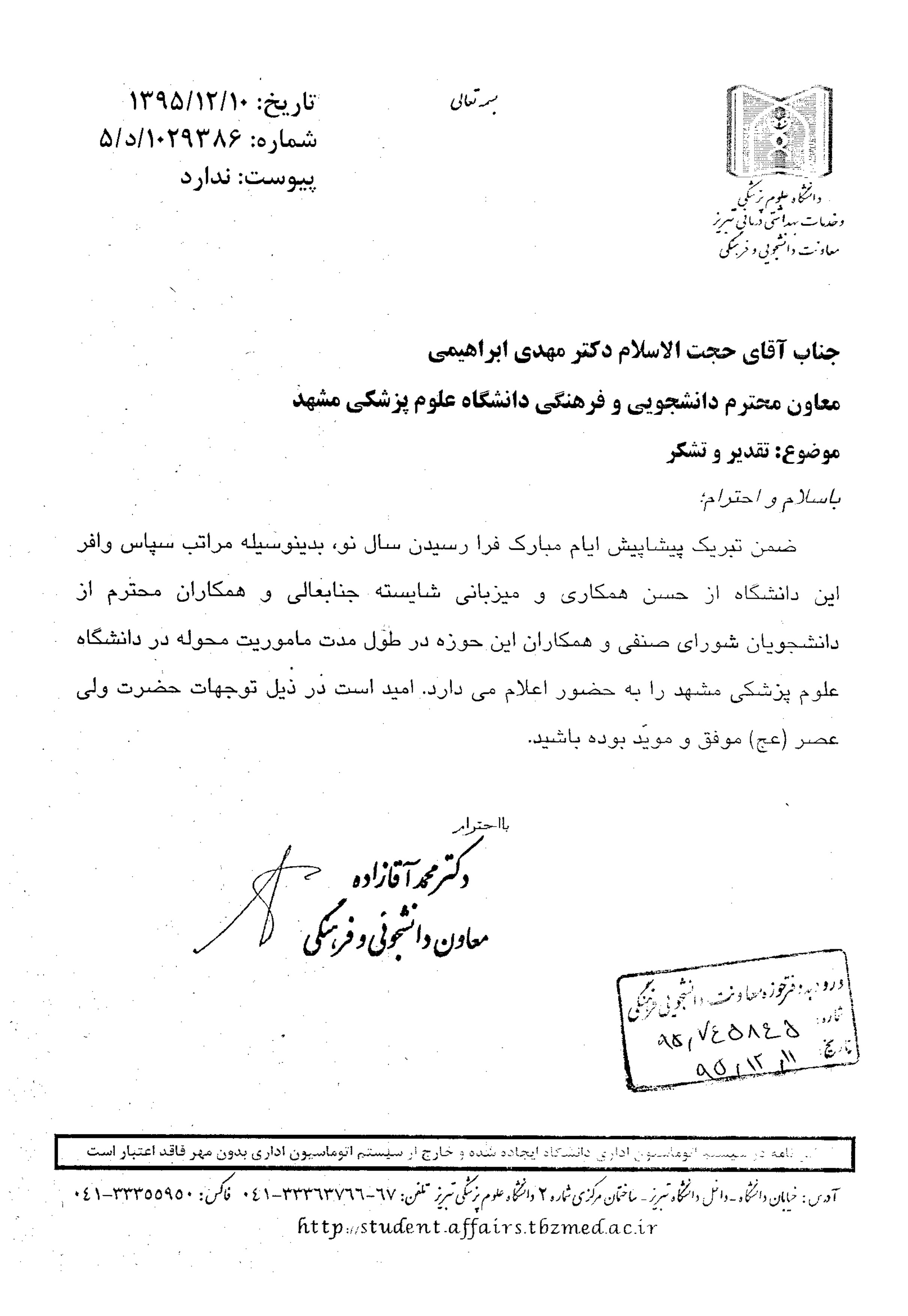 سادیا مظلوم اخبار مدیریت دانشجویی 14 اسفند 1395 بازدید: 928 امتیاز: ( 0 Rating ) قدردانی معاون دانشجویی فرهنگی دانشگاه تبریز از معاون دانشجویی فرهنگی دانشگاه علوم پزشکی مشهد امتیاز کاربران لطفا رای دهید رای 1 رای 2 رای 3 رای 4 رای 5 قبلی بعدی