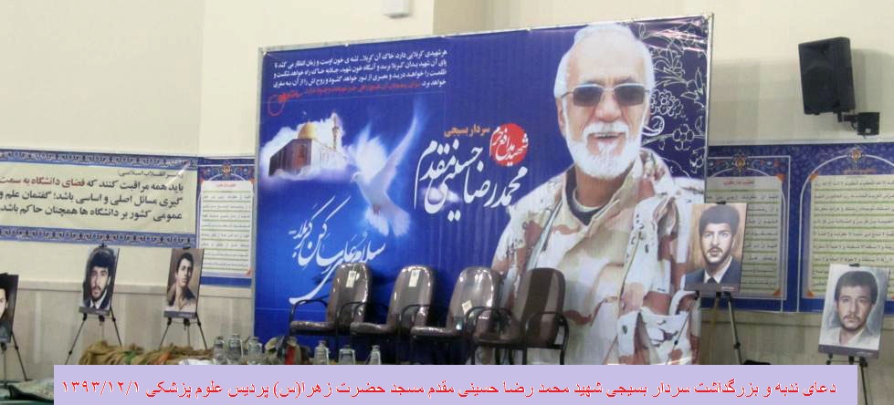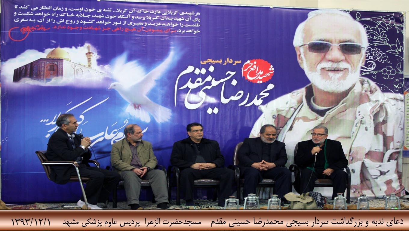 بزرگداشت سردار بسیجی شهید محمد رضا حسینی مقدم صبح جمعه مورخ 93/12/1 در مسجد حضرت زهرا(س) پردیس دانشگاه علوم پزشکی مشهد با حضور همرزمان و دوستداران آن شهید والا مقام برگزار گردید.