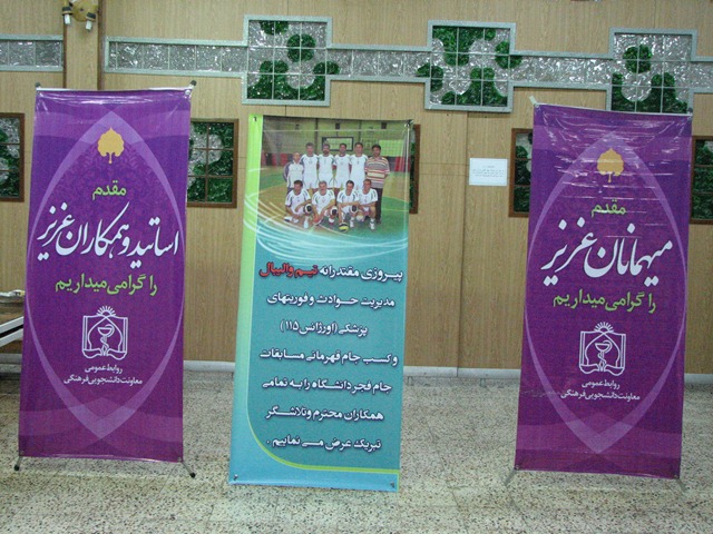 آئین اختتام مسابقات جام فجر 93 دانشگاه علوم پزشکی مشهد و تجلیل از قهرمانان یازدهمین المپیاد ورزشی دانشجویان دانشگاه های علوم پزشکی کشور با حضور دکتربحرینی معاون توسعه مدیریت ومنابع ،دکترابراهیمی معاون دانشجویی فرهنگی ،جمعی از مدیران و همکاران شرکت کننده دراین مسابقات و دانشجویان برتر المپیاد ورزشی درایام ولادت حضرت زینب(س) برگزارشد.