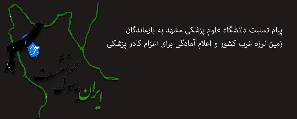 سرپرست دانشگاه علوم پزشکی مشهد در پیامی ضمن عرض تسلیت به بازماندگان زمین لزره استان های غرب کشور، آمادگی این دانشگاه را برای پذیرش مصدومان و هر گونه کمک و همراهی در این زمینه اعلام کرد.