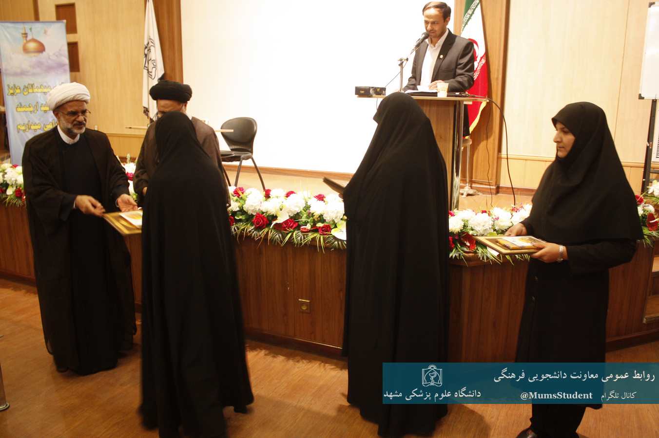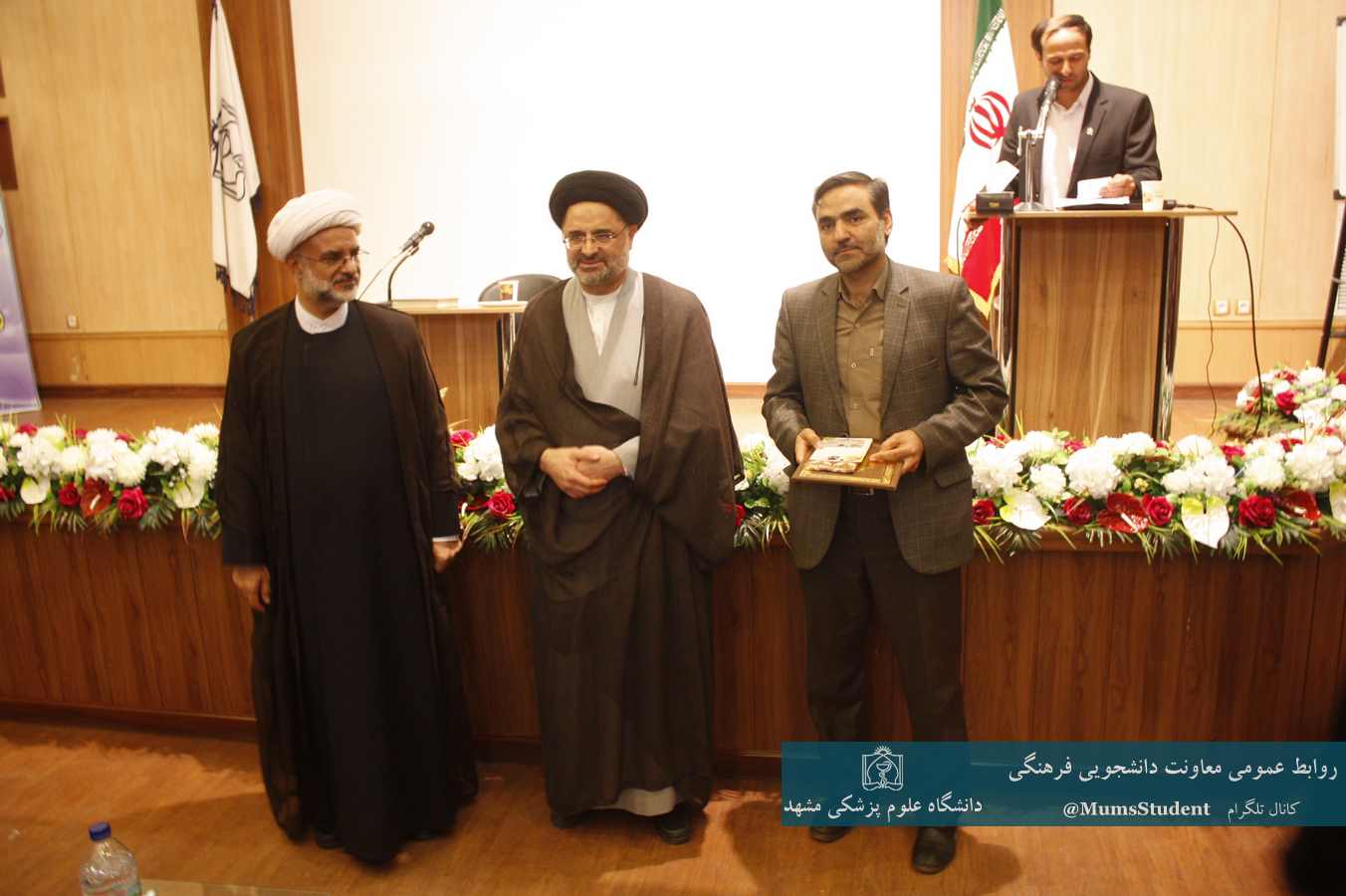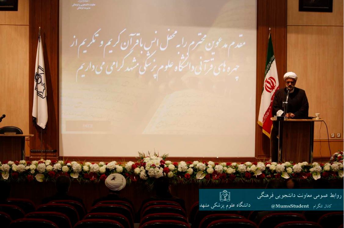 در این مراسم از چهرهای قرآنی دانشگاه در بخش اساتید خانم دکتر امید خدا عضو هیئت علمی دانشکده دندانپزشکی، در بخش کارکنان آقای علیرضا نجفی از بیمارستان قائم(عج) و در بخش دانشجویان خانم معصومه زیبنده و آقای علیرضا پیوندی از دانشجویان دانشکده پزشکی تکریم به عمل آمد.