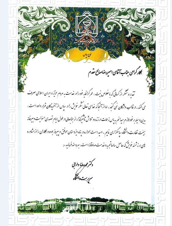 مسئول سابق دبیرخانه هیئت نظارت بر تشکلهای دانشگاه تقدیر و تشکر کرد.