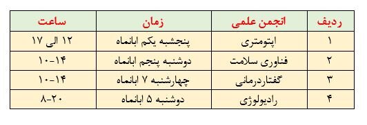 وی اظهار داشت: شوراهای مرکزی انجمن های علمی، هر یک دارای ۵ عضو اصلی می باشند که برای مدت یک سال در این شوراها فعالیت خواهند نمود.
