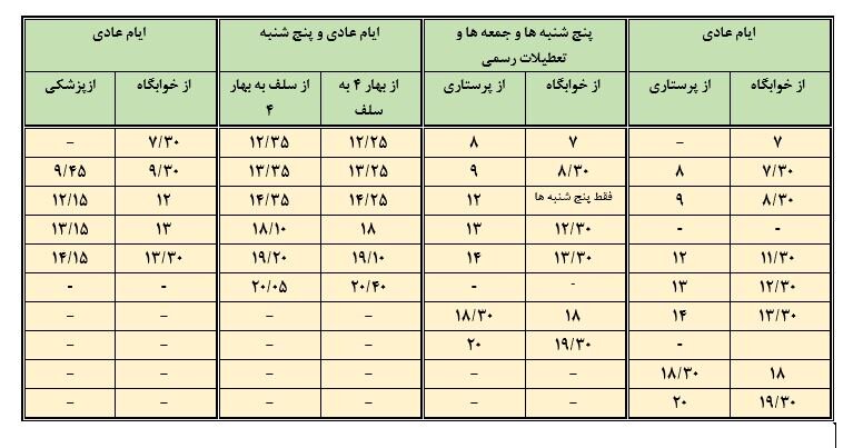 به گزارش مفدا مشهد، با توجه به تغییر تقویم آموزشی تا ۲۴ آبان ماه واحد نقلیه برنامه سرویس های دانشجویی را طبق جدول زیر اعلام کرد:
