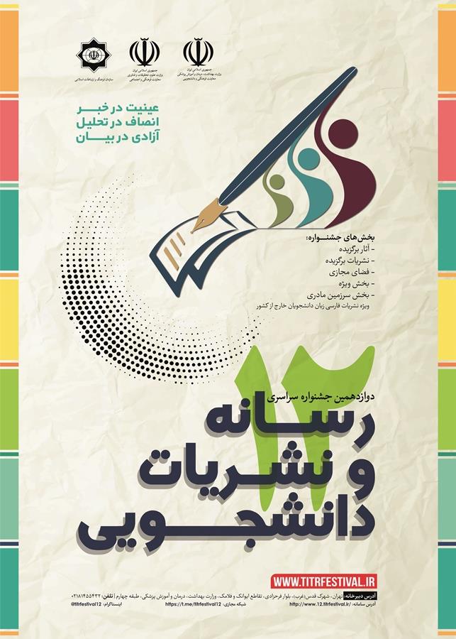 دستورالعمل اجرایی برگزاری دوازدهمین جشنواره سراسری رسانه و نشریات دانشجویی (تیتر ۱۲) که حاوی جزئیات و اطلاعات کامل شیوه ثبت و ارسال آثار به این جشنواره است از لینک زیر قابل دریافت است: