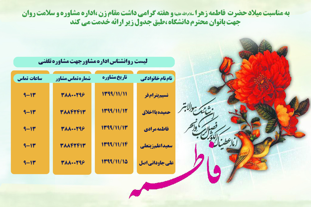 وی برنامه مشاوره تلفنی روانشناسان را به شرح ذیل اعلام کرد: