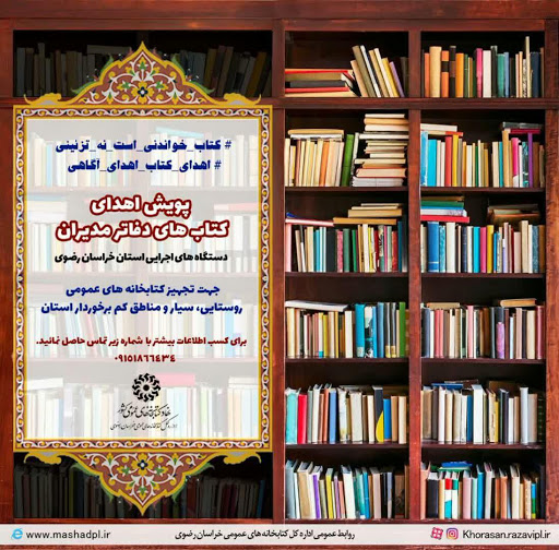 پویش «کتاب خواندنی است نه تزئینی» در خراسان رضوی اجرا می شود.حجت الاسلام سبزیان مدیرکل کتابخانه های عمومی خراسان رضوی با اعلام این خبر گفت: این مهم بر همگان آشکار است که اهمیت و نقش کتاب و کتابخوانی در افزایش آگاهی و رشد فکری و معنوی و اجتماعی عموم جامعه بسیار موثر است.