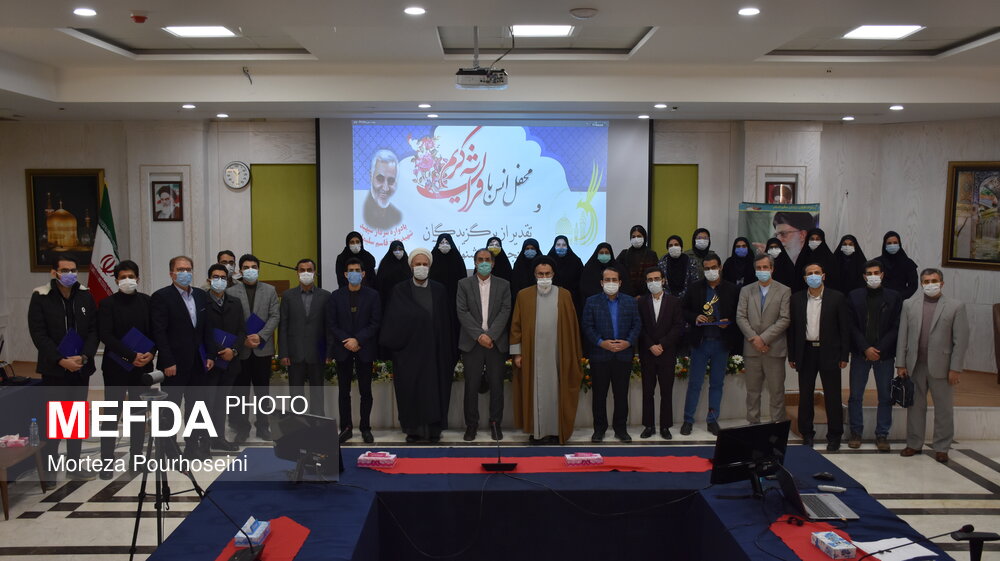 در این محفل انس با قرآن کریم، که قاری ممتاز جهان اسلام ؛ استاد حاج سید جواد حسینی با قرائت آیات نورانی سوره احزاب فضا را عطرآگین کرد ، علاوه بر تقدیر از برگزیدگان بیست و پنجمین جشنواره قرآنی هدهد به صورت مجازی که با حضور تعداد محدودی از منتخبان و مسؤولان دانشگاه، به صورت حضوری برگزار شد، استاد ابوالفضل چمنی از خوانندگان آیینی کشور، با اجرای قطعه ای یاد و خاطره سپهبد شهید سردار قاسم سلیمانی را که این جشنواره قرآنی به نام ایشان نامگذاری شده بود گرامی داشت.