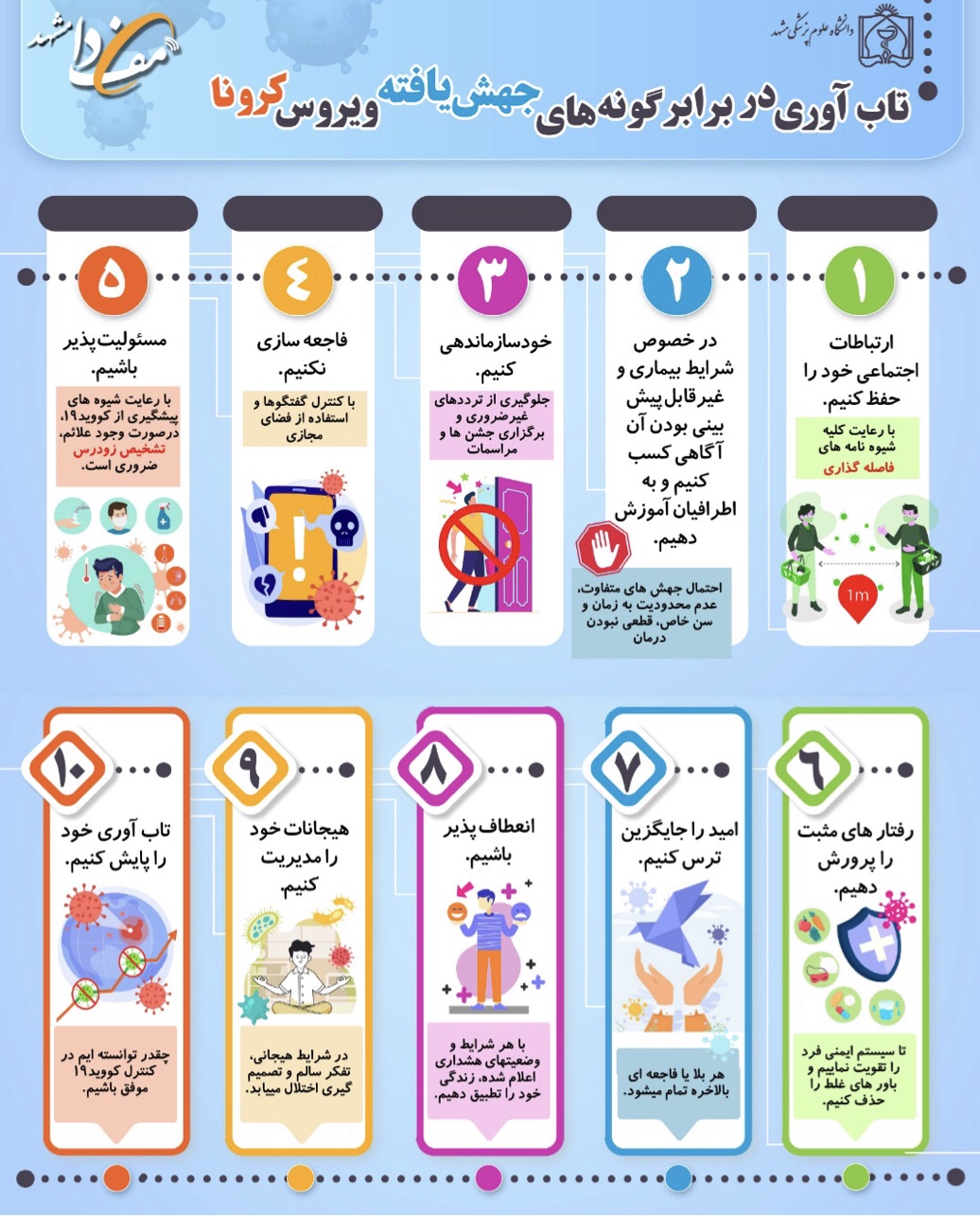 سرویس چندرسانه ای مفدا مشهد با همکاری سرویس علمی پژوهشی اقدام به انتشار اینفوگرافی تاب آوری در برابر گونه های جهش یافته ویروس کرونا نموده است.