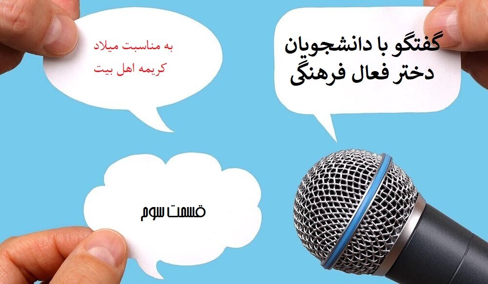 ه گزارش مفدا مشهد، به مناسبت فرا رسیدن روز ولادت کریمه اهل بیت حضرت معصومه(س) و روز دختر ، خبرنگار مفدا مشهد به سراغ دانشجویان فعال فرهنگی دختر از جمله صبا صباغ دبیر انجمن علمی بهداشت محیط و ساجده جانداری دبیر انجمن علمی تغذیه رفته و گفتگویی کوتاه انجام داده است که باهم می خوانیم: