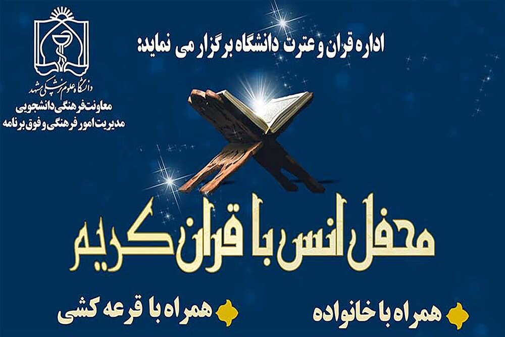 به گزارش مفدا مشهد ؛ محفل انس با قرآن کریم ویژه هفته قرآن و دانشگاه به همت اداره قرآن و عترت دانشگاه علوم پزشکی مشهد ، برگزار خواهد شد.