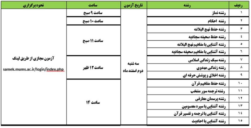 وی افزود : زمانبندی این دوره از جشنواره که با ثبتنام و استقبال خوب اساتید دانشجویان و کارکنان دانشگاه علوم پزشکی مشهد همراه بوده، در بخش معارفی برای هر رشته به شرح خواهد بود.