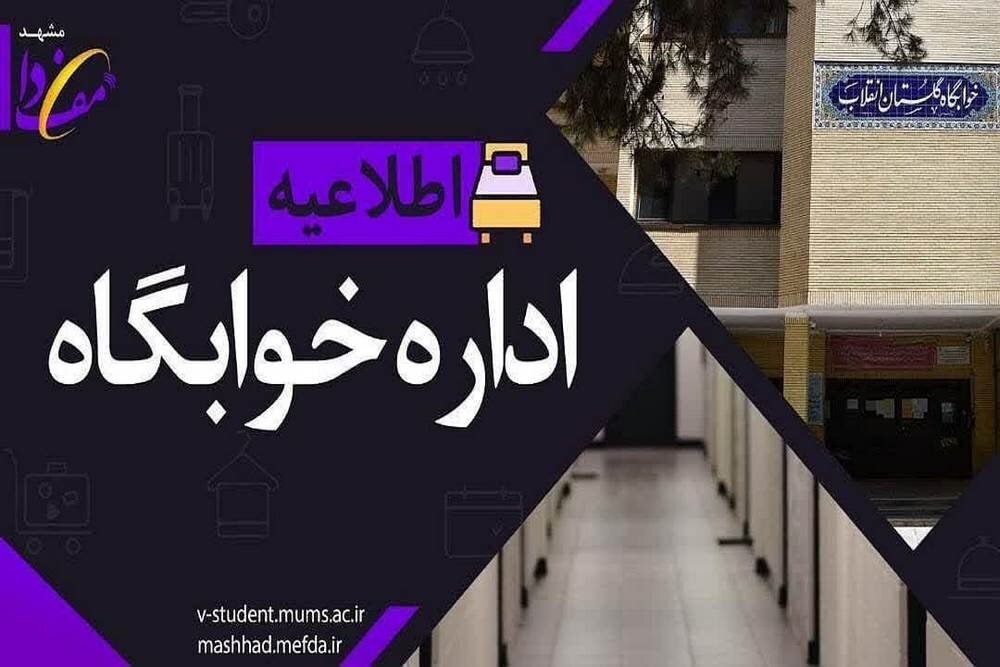 قابل توجه دانشجویان محترم به اطلاع می رساند ، طبق ماده ۳۵ آئین نامه اسکان و همچنین مصوبات کمیته اسکان از تاریخ ۳ تیرماه ۱۴۰۲ تمامی درب های ورودی خوابگاه ها پس از ساعات مجاز اعلام شده بسته خواهد شد به غیر از موارد ذکر شده در ماده ۳۵ آئین نامه اسکان از ورود دانشجویان پس از ساعت اعلام شده جلوگیری به عمل خواهد