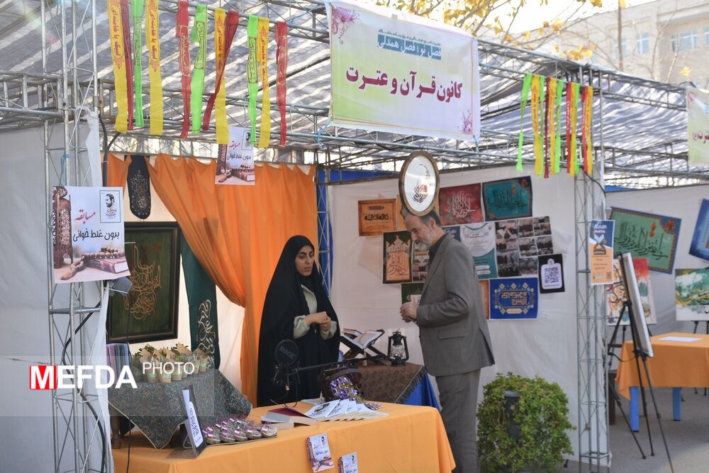 در ادامه حسینی محراب رییس اداره قرآن و عترت (ع) مدیریت امور فرهنگی و فوق برنامه افزود: این نمایشگاه با هدف ارائه ظرفیتهای علمی، هنری دانشگاه در حوزه قرآن و عترت(ع) برگزار شده است و از شهدا به عنوان عاملین اصلی عمل به قرآن در ابتدای نمایشگاه ، غرفه ای نمادین با عنوان گذرگاه مجنون برپا شده است تا با شنیدن بخشهایی از وصیت نامه شهدا بار دیگر تاثیر قرآن در زندگی به ما یادآوری شود، همچنین غرفه ای با حضور موسسه تدبر در قرآن راه اندازی شده تا مفاهیم قرآنی را با شیوه ای جدید و نموداری ارائه دهد.