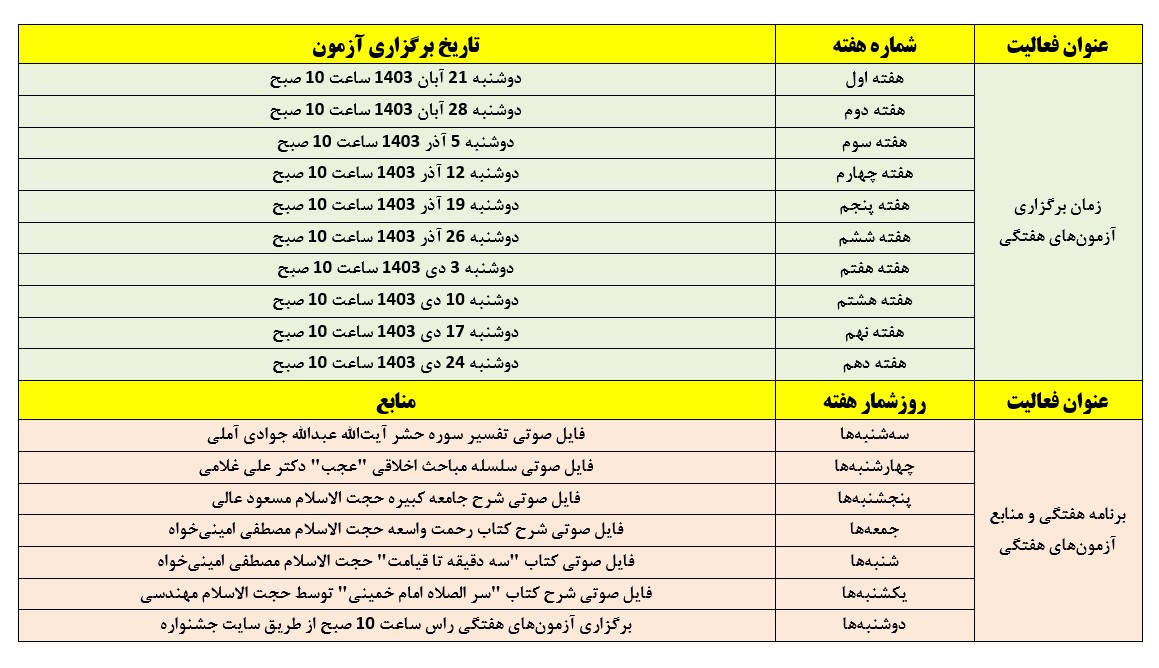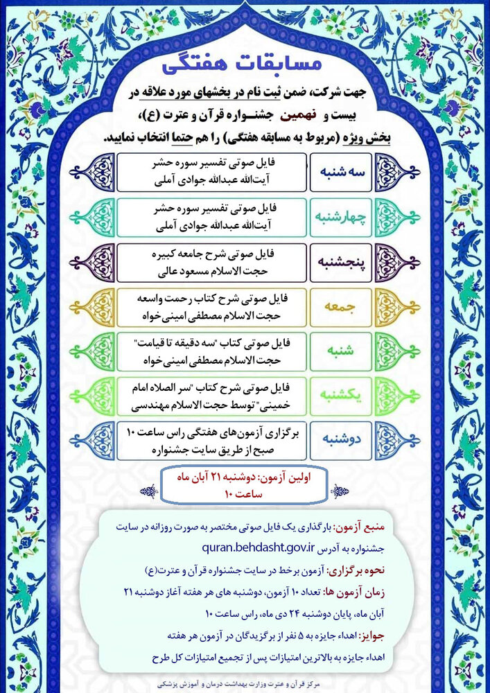 خاطر نشان می شود: اطلاع رسانی به شرکت کنندگان هر هفته به صورت پیامک انجام خواهد شد.