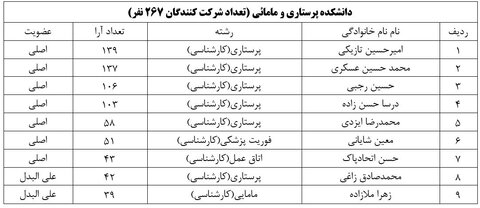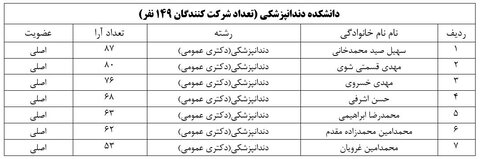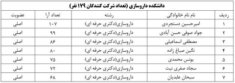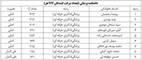 نتایج بر اساس کسب حداکثر آرا به ترتیب و به تفکیک دانشکده ها به شرح ذیل می باشد: