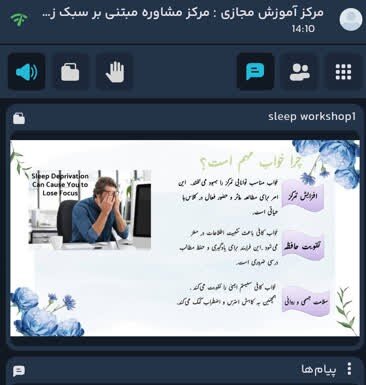 همچنین در این برنامه، اصول خودمراقبتی در زمینه خواب و سبک زندگی سالم معرفی شد تا دانشجویان بتوانند با بهرهگیری از راهکارهای عملی، کیفیت خواب خود را بهبود بخشند.