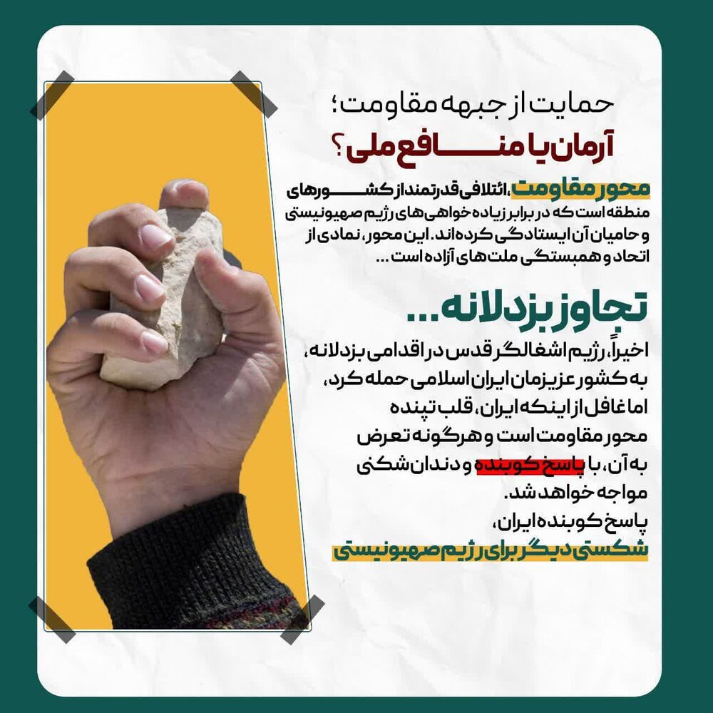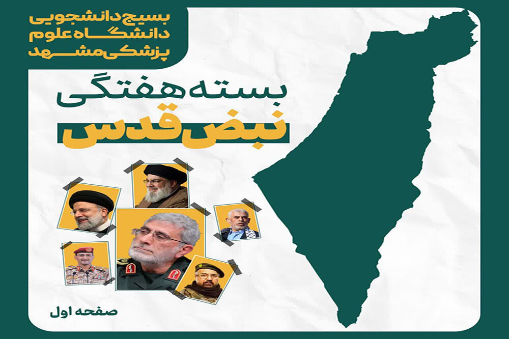 بسته هفتگی نبض قدس به همت بسیج دانشجویی دانشگاه علوم پزشکی مشهد، با موضوعات: فلسطین، قصهای است که فراموش نمیکنیم؛ نه از سر عادت، که از سر تعهد، روایتی از خط مقدم مقاومت، تحلیلی بر جبههی ایستادگی، مروری بر مهمترین تحولات جبههی مقاومت از منظر ملی و اسلامی مقاومت، هویت ماست منتشر شد.